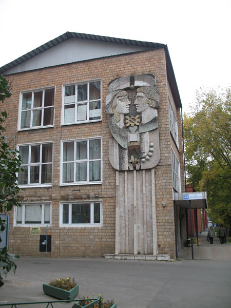 Панно-мозаика «Мать и дитя» в Люберцах Традиционная советская мозаика со схематичным непропорциональным рисунком и грубоватым исполнением из плитки. Сюжет восходит к вечным образам женщины-матери, в том числе, как бы эпатажно это не звучало, к иконописной традиции изображений матери с ребёнком на руках. Фон представяет собой вариацию обязательного плакатного набора солнца, голубей и красных флагов.