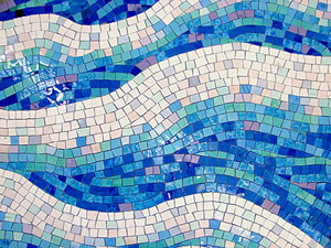 Создание мозаичного рисунка Техника мозаики разрешает с легкостью облицовывать криволинейные плоскости, организовывать мягкий переходы от горизонтали к вертикали, к примеру, при приспособлении подиумов, бассейнов. Всевозможные выдумки художника имеют все шансы быть воплощены в жизнь посредством мозаики.